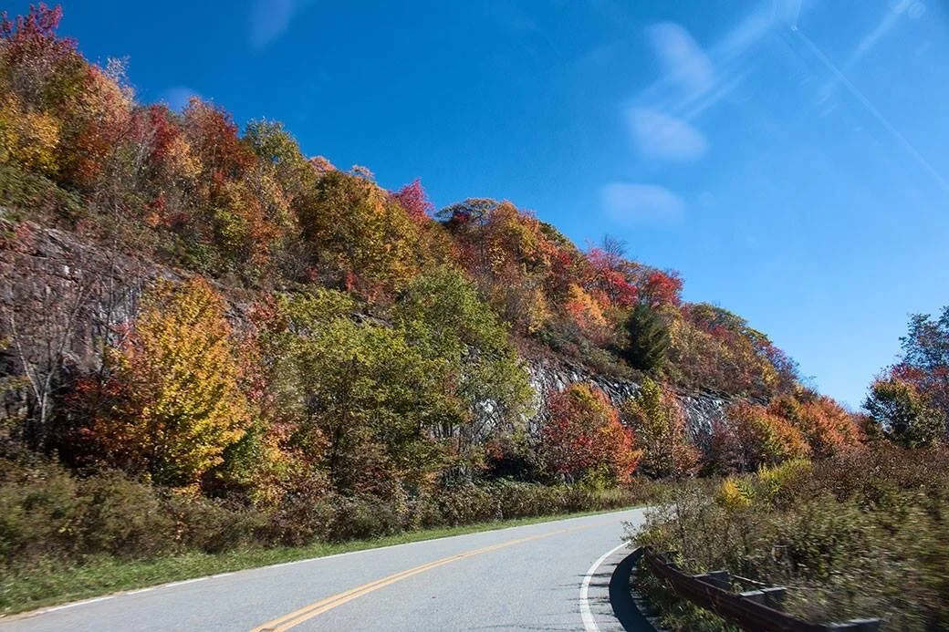 The Cherohala Skyway is a 43-mile (69 km) National Scenic Byway and National Forest Scenic Byway that connects Tellico Plains, Tennessee, to Robbinsville, North Carolina in the southeastern United States. Its name is a portmanteau of Cherokee and Nantahala, the two national forests through which it passes. Along with multiple vistas and overlooks, the skyway provides easy vehicular access to various protected and recreational areas of the Unicoi Mountains, including the Citico Creek Wilderness, the Bald River Gorge Wilderness, and the remote interior of the Joyce Kilmer Memorial Forest.