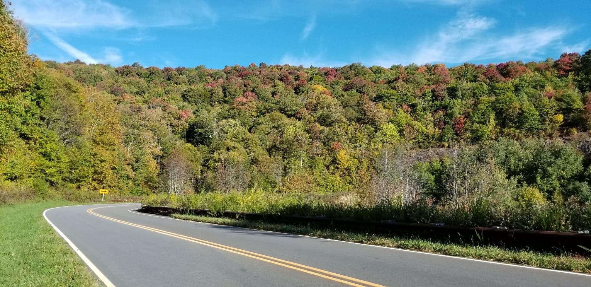 Planning for the Cherohala Skyway began in 1958 and the road was completed on October 12, 1996 at a final cost of one hundred million dollars. The western (or Tennessee) half of the skyway follows Tennessee State Route 165 for nearly 25 miles (40 km) from Tellico Plains to the state line at Stratton Gap. The eastern (or North Carolina) half follows North Carolina Highway 143 for just over 18 miles (29 km) from Stratton Gap to Robbinsville. The skyway gains over 4,000 feet (1,200 m) in elevation, rising from a low point of just under 900 feet (270 m) at Tellico Plains to a high point of just over 5,400 feet (1,600 m) on the slopes of Haw Knob near the Tennessee-North Carolina state line. The North Carolina half of the skyway terminates near the south shore of Lake Santeetlah.