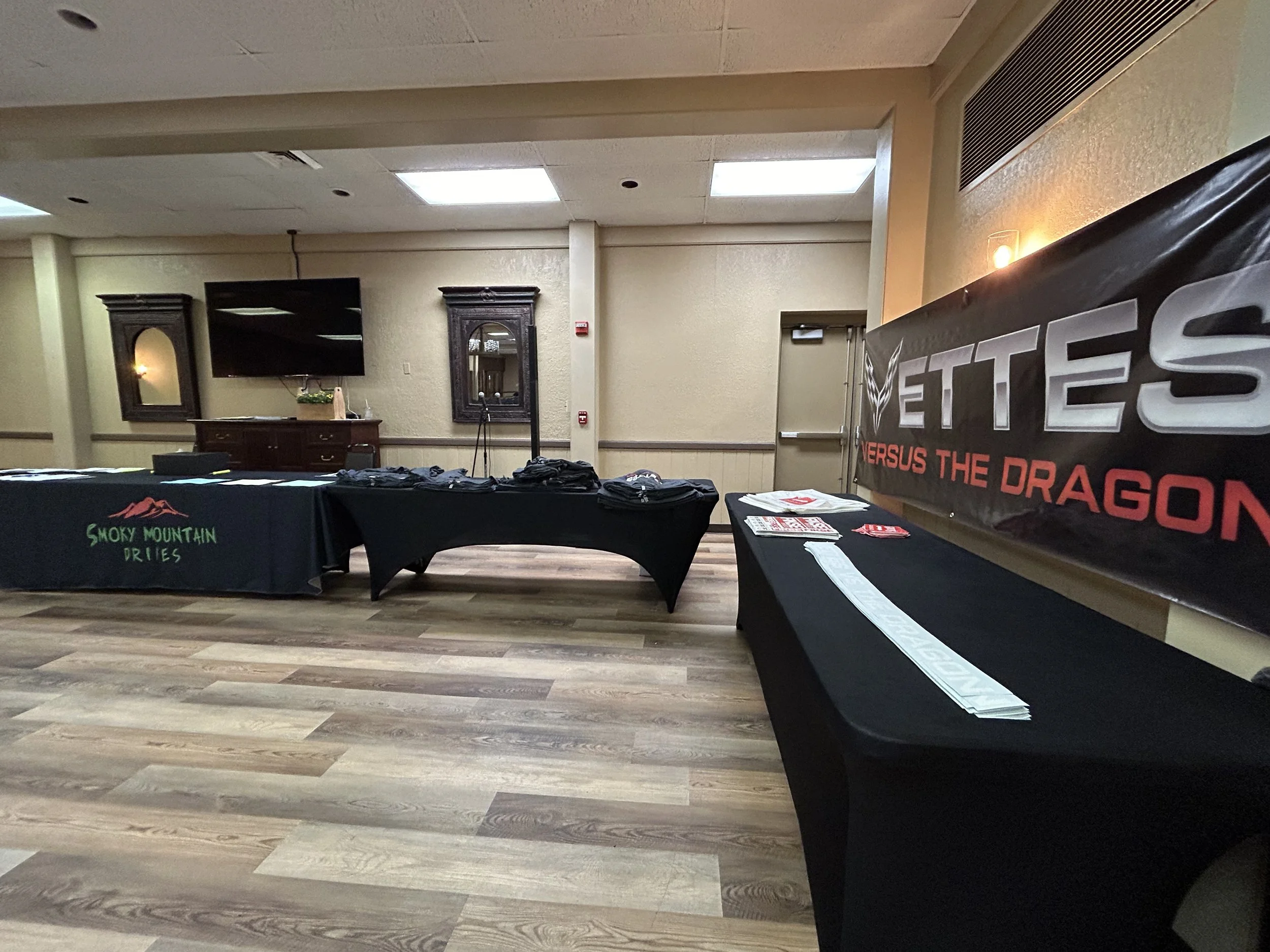 The Event Hall at the Fontana Village Resort is a 9,000 [sq ft] room that is our home when at the resort. This is where our Registration Check-In and Driver Meetings happen. Additionally, banners and booths for our sponsors and vendors will be set up here.